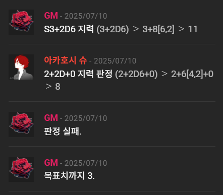 판정 성공과 실패의 경우, GM이 이렇게 손수 띄워주시면 됩니다.